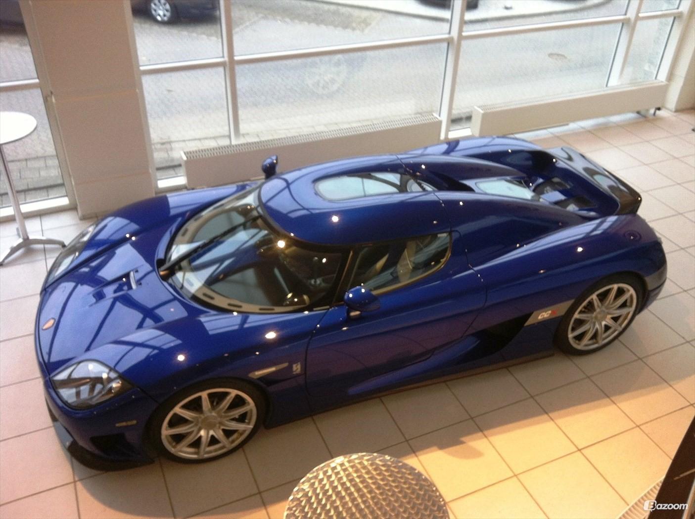 Koenigsegg Royal Blue was chosen as exterior color for this CCX, which was a first as this color was never used before on any Koenigsegg The blue was supplemented with carbon accents like the splitter, the Top Gear rear wing and the partially carbon Dymag 9-spoke rims.