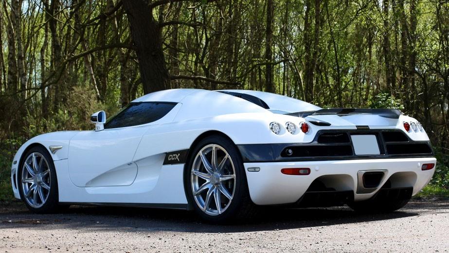 Finished in Pearlescent White over exposed Carbon Fiber, which makes it one of the easiest Koenigseggs to recognize. The exposed carbon fiber is most notable at the front but continues at the back as the license plate holder section and the Top Gear style rear wing are also finished in exposed carbon fiber as is part of the mirrors.